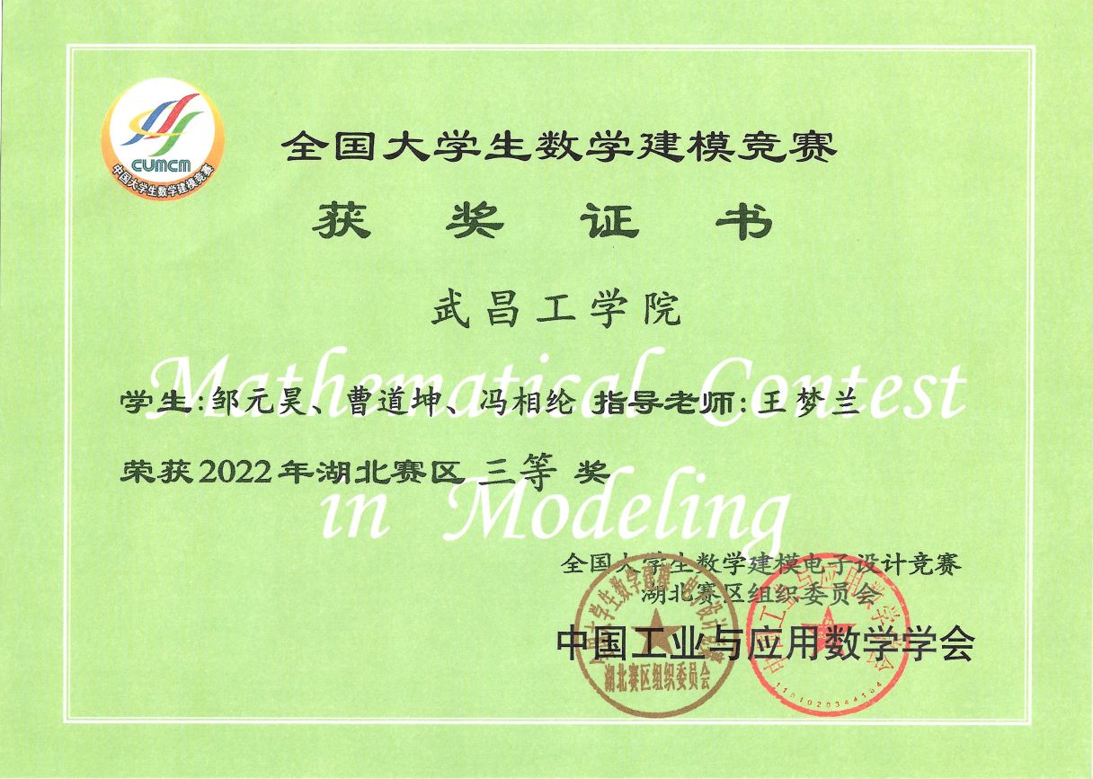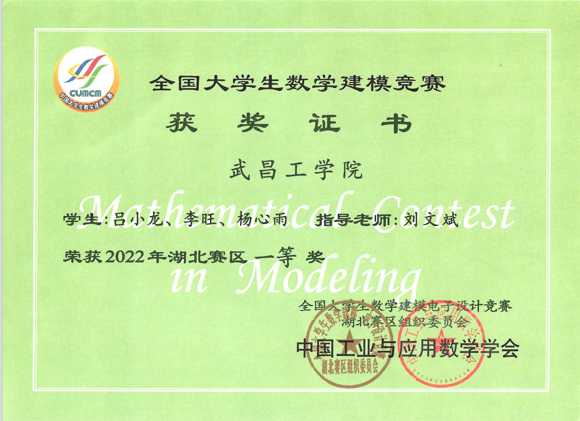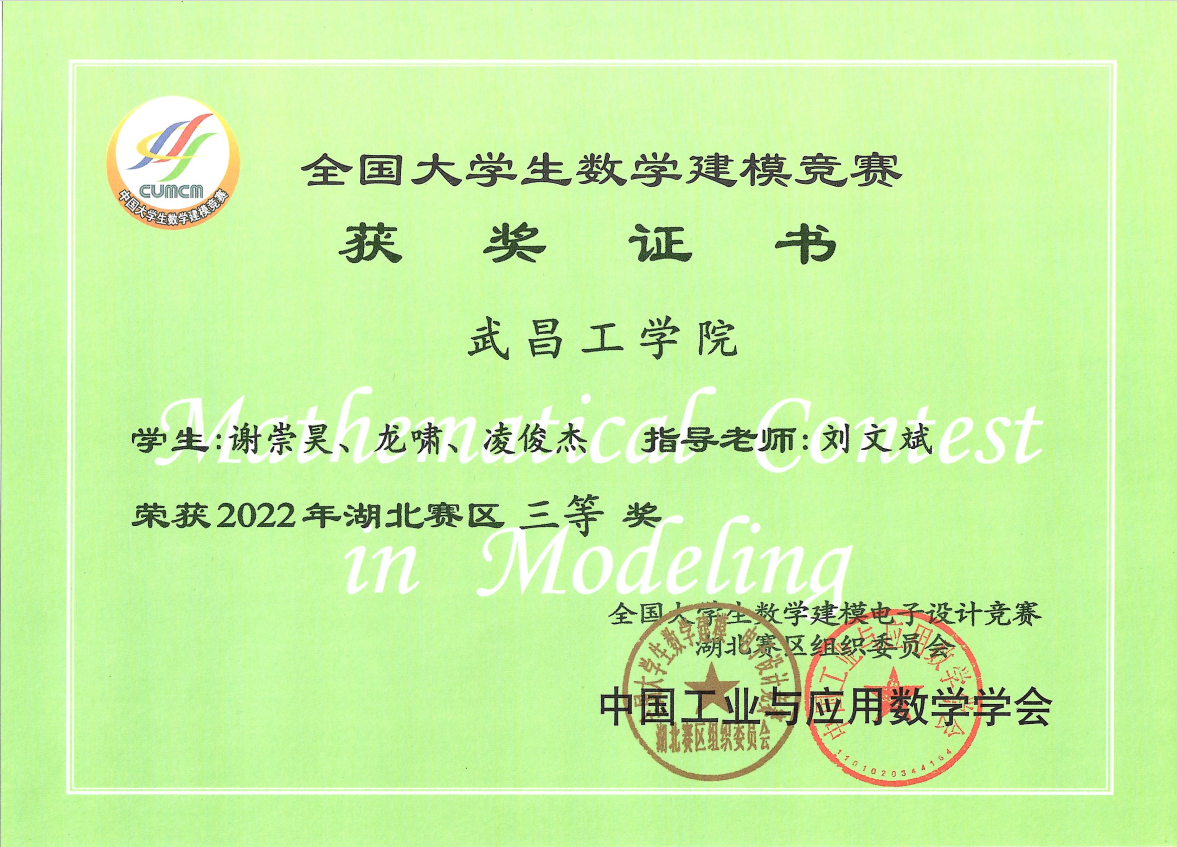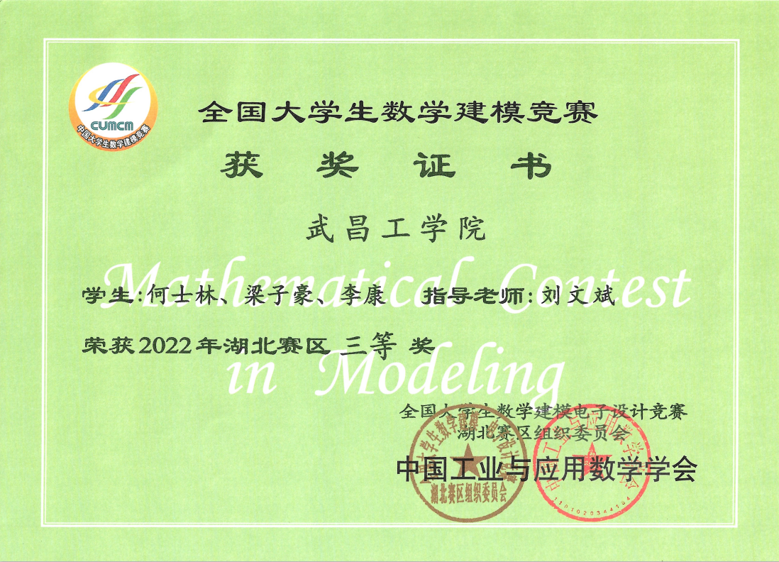 武昌工学院数学建模协会成立于2007年,协会是由数学教研室创建,是在我校参加全国大学生数学建模竞赛的过程中应运而生的。经过多年的发展,在学校、学院各级领导和校社联的大力支持下,协会已经成为学校规模和影响力较大的学术性社团之一。数学建模协会为各个学院培养了一批又一批的科研小能手,并为各类赛事特别是全国大学生数学建模竞赛提供了源源不断的参赛选手。